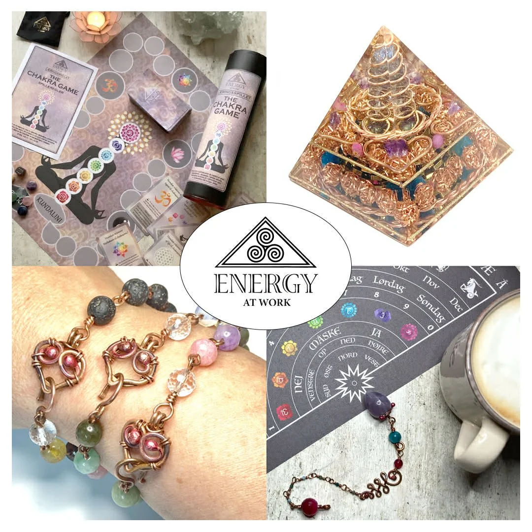 Helle Ljungberg fra Energy at Work skaber håndlavede energiredskaber som orgonitter, penduler, armbånd m.m. Alle er de unika lavet af Helle med fokus på intention, håndværk og nærvær.