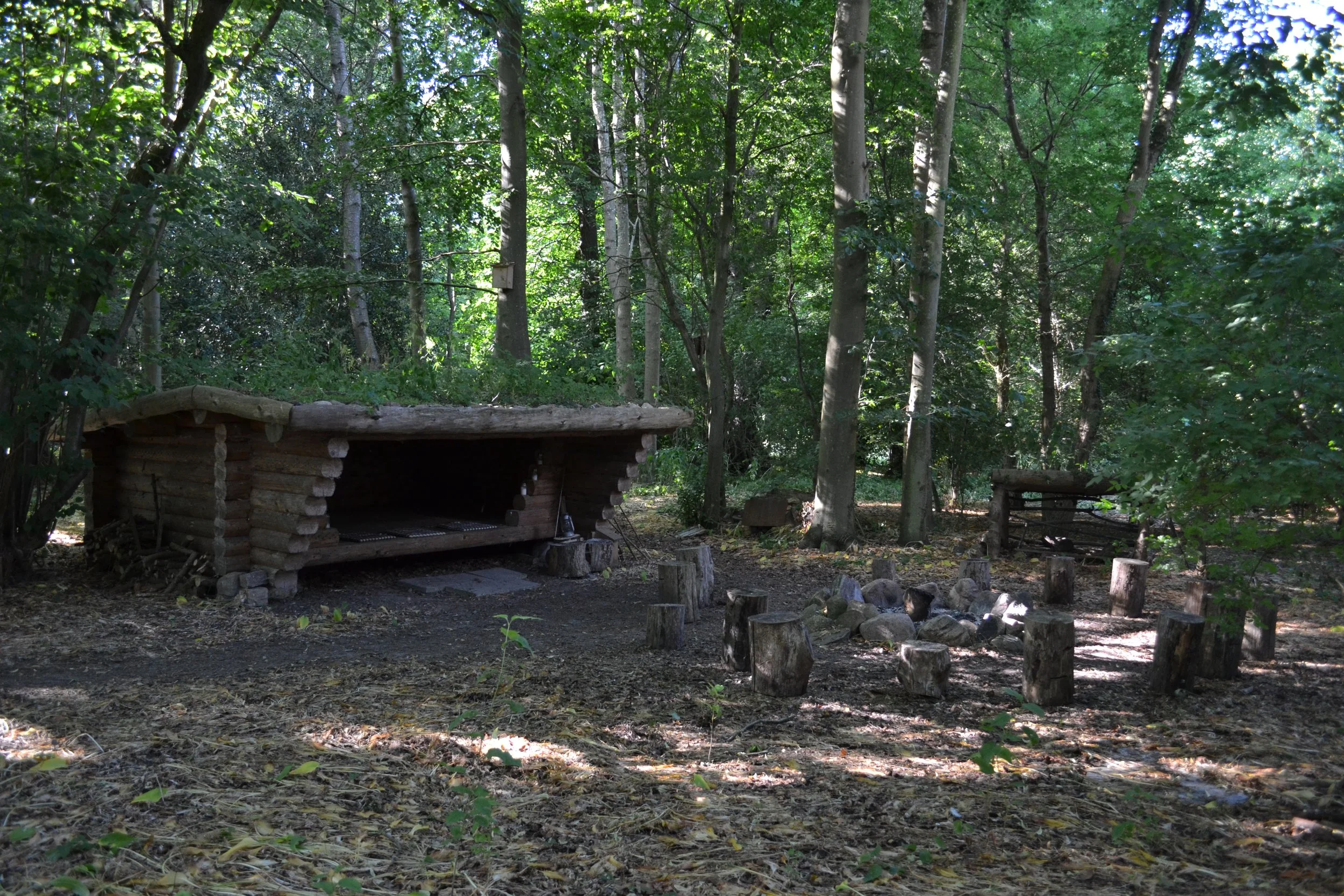 I det skønne skovområde finder man shelter med tilhørende bålplads og das. Blot 200m fra hovedhuset, men midt i skovens dybe ro.